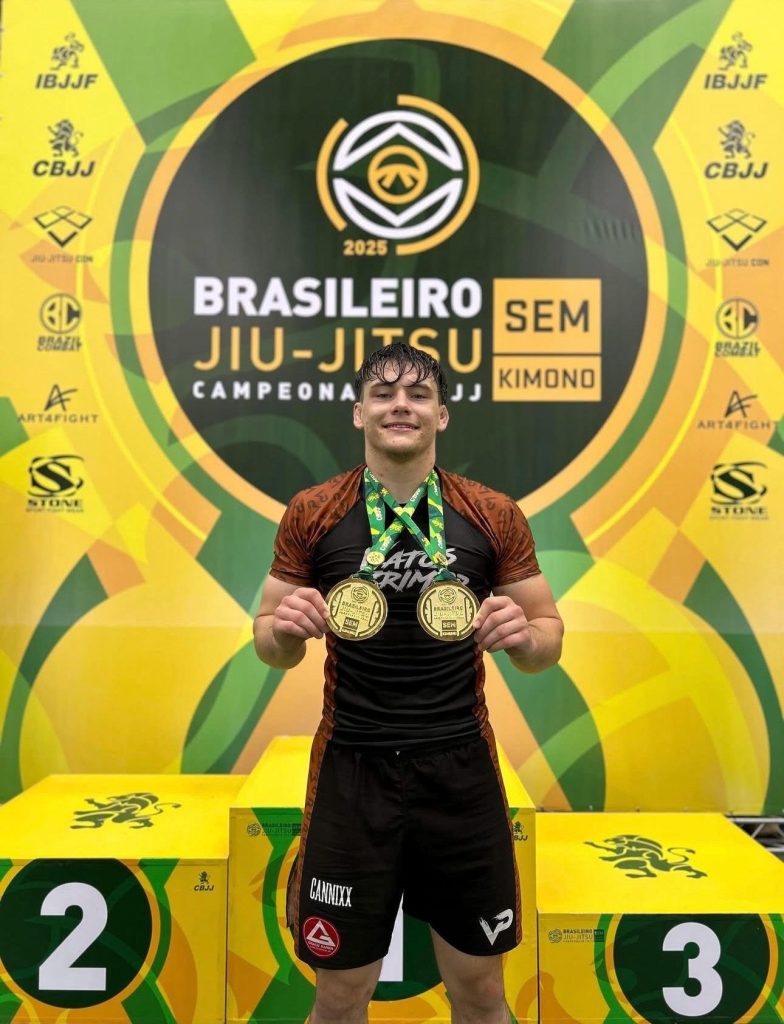 O competidor saiu de Houston e, pela primeira vez, decidiu visitar e competir no Brasil. A decisão se mostrou acertada: o jovem talento voltou para casa com a medalha de ouro no peso pesado e no absoluto, na faixa-marrom, durante o acirrado Campeonato Brasileiro Sem Kimono, promovido pela IBJJF.