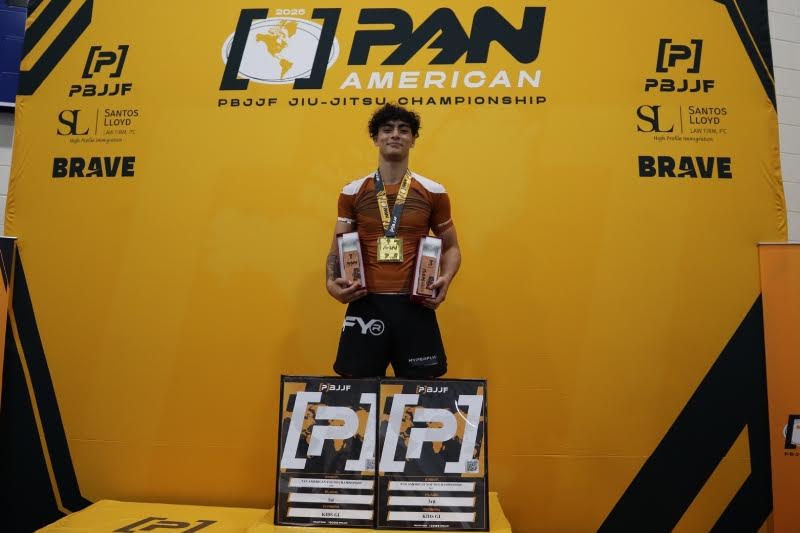 Nos EUA, a estrela foi Enzo Yamasaki, filho de Fernando e sobrinho de Mario Yamasaki, ex-árbitro do UFC. Competindo na faixa-marrom, Enzo garantiu o título tanto no peso como no absoluto – com e sem kimono – firmando seu nome entre as promessas do Jiu-Jitsu mundial.